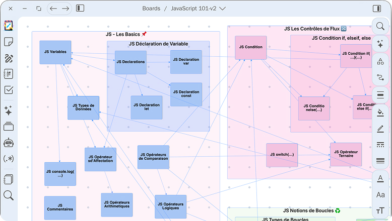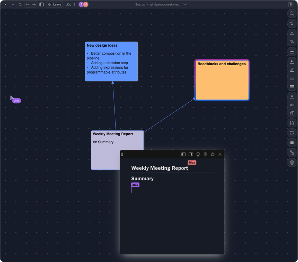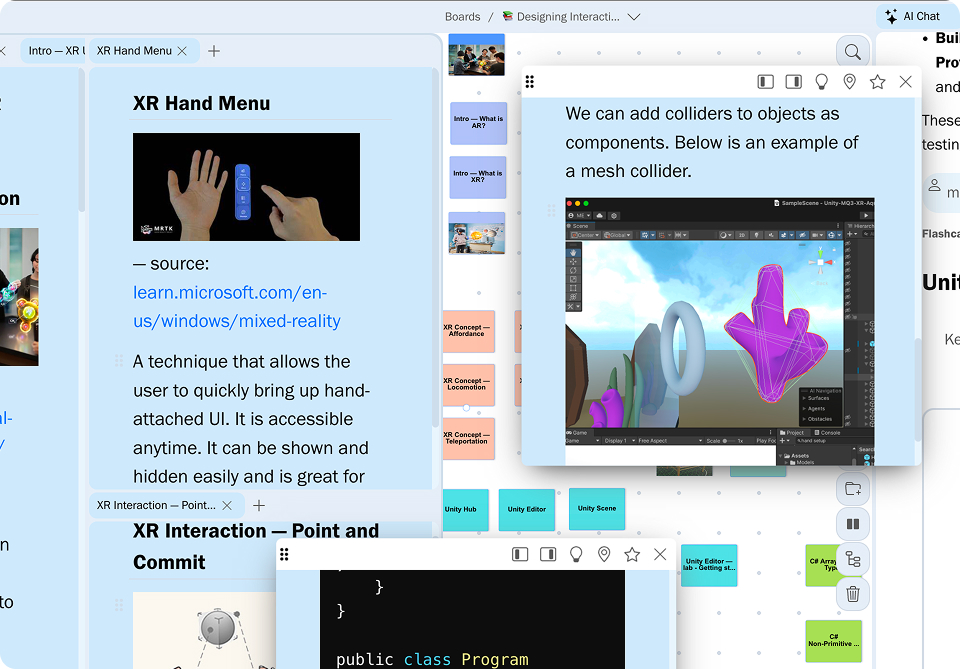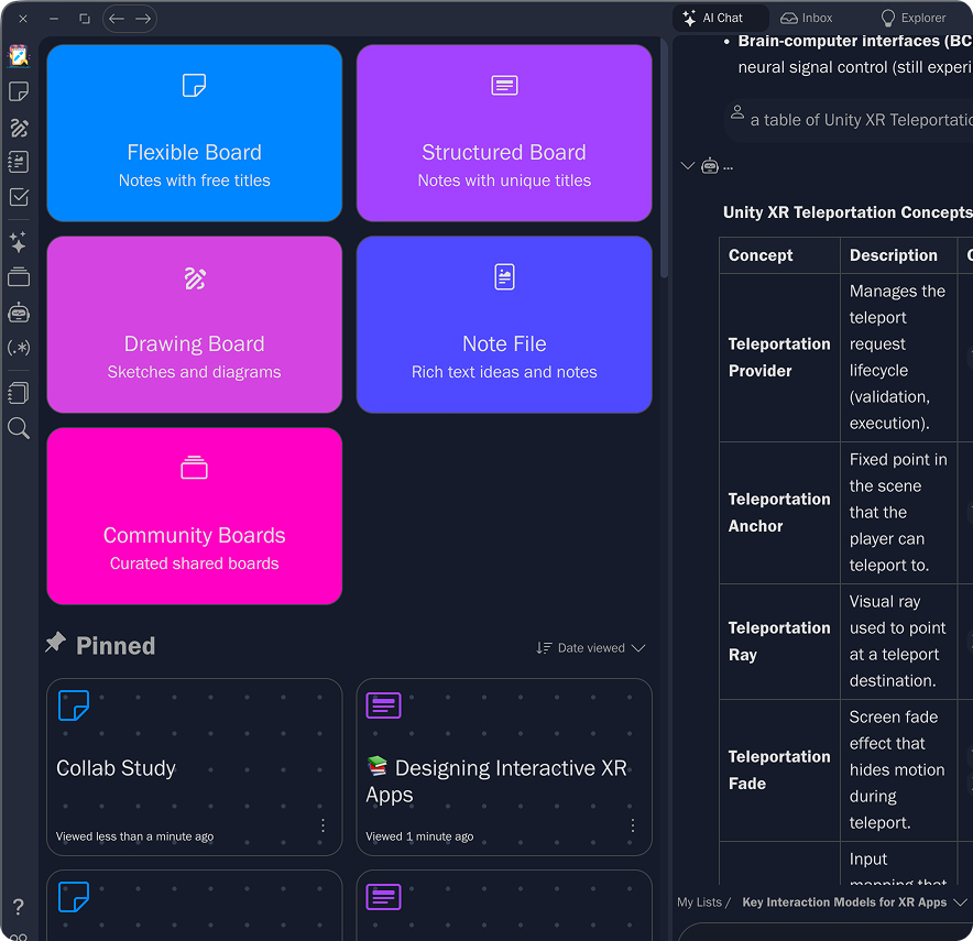 Drag and drop notes, images, and files onto an infinite canvas to see the bigger picture.
